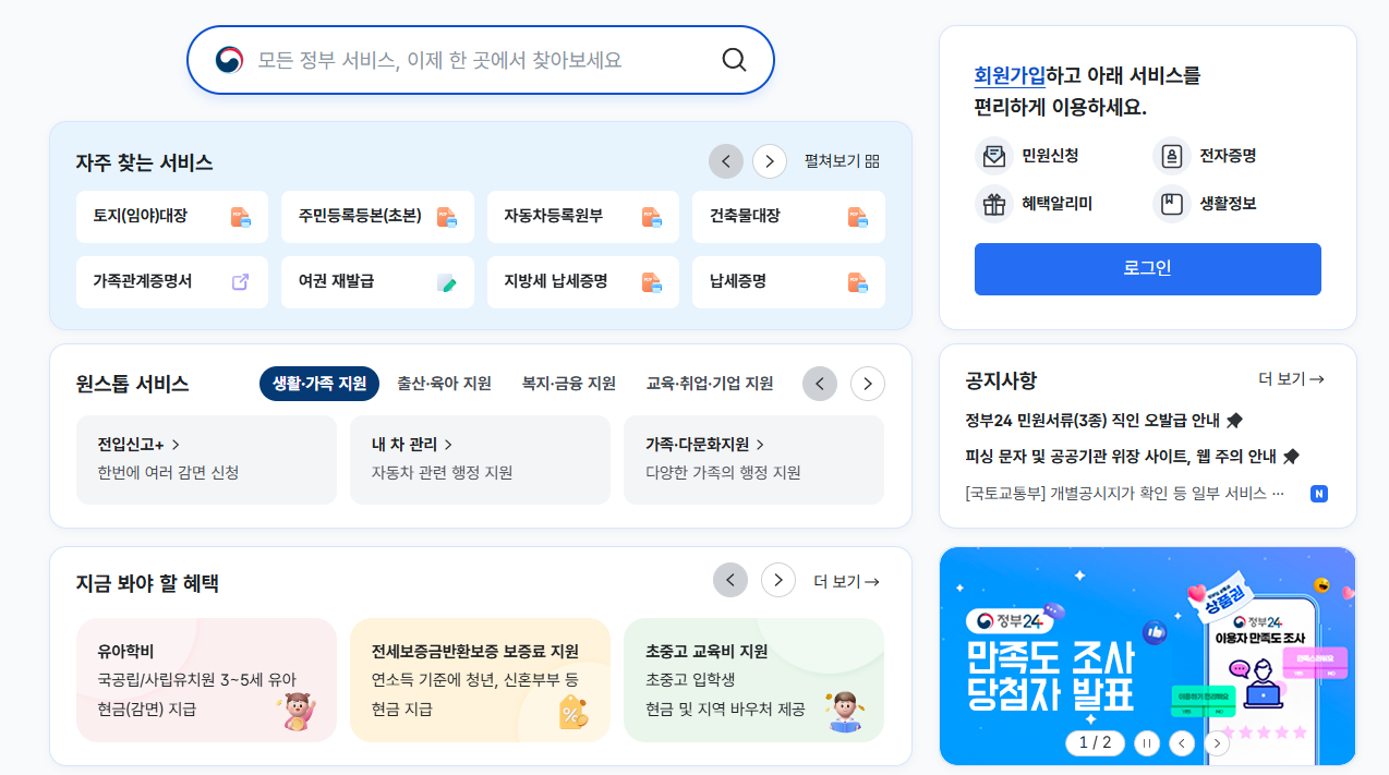 - 정부24 홈페이지 또는 모바일 앱 접속