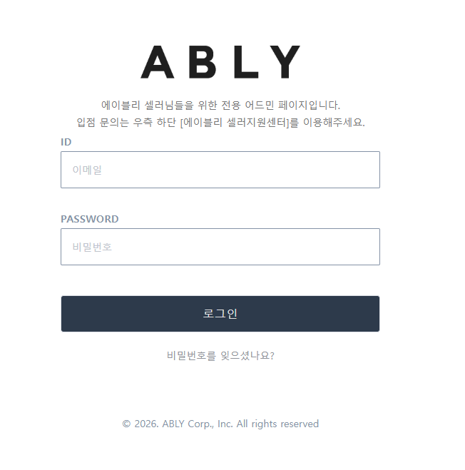 에이블리 판매자센터는 온라인 쇼핑 플랫폼 에이블리(ABLY)의 셀러 전용 관리 시스템입니다.